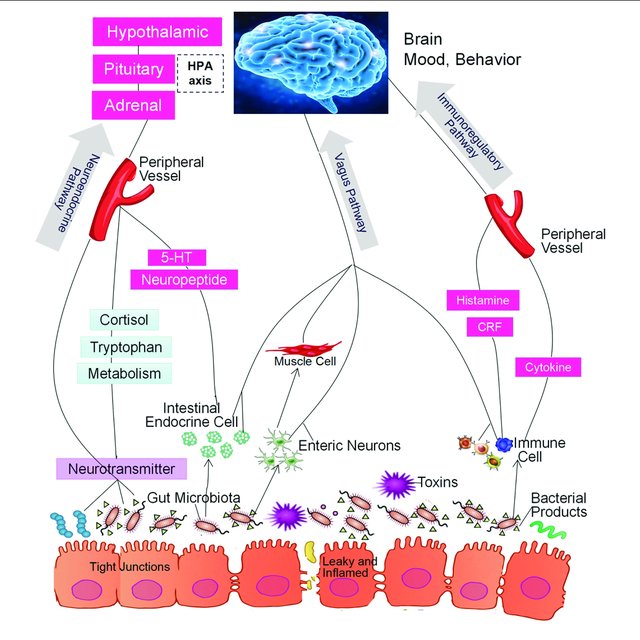 장내 미생물군은 면역조절, 신경내분비 호르몬 조절, 장-뇌 축을 통해 뇌 기능을 조절합니다.