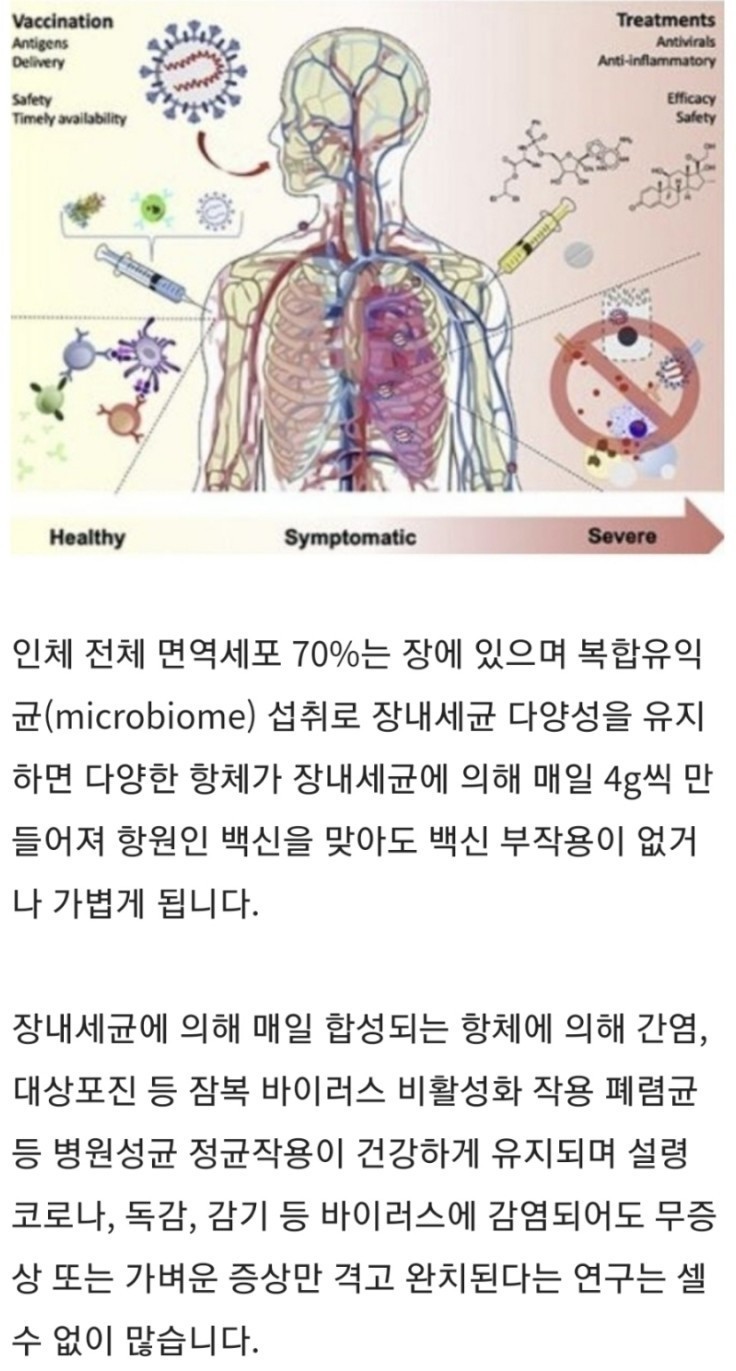 평소 면역력을 건강하게 유지한다면 감염 예방과 설령 감염되었다 하더라도 경증 또는 무증상으로 자연회복 될 수 있다는 건입니다.