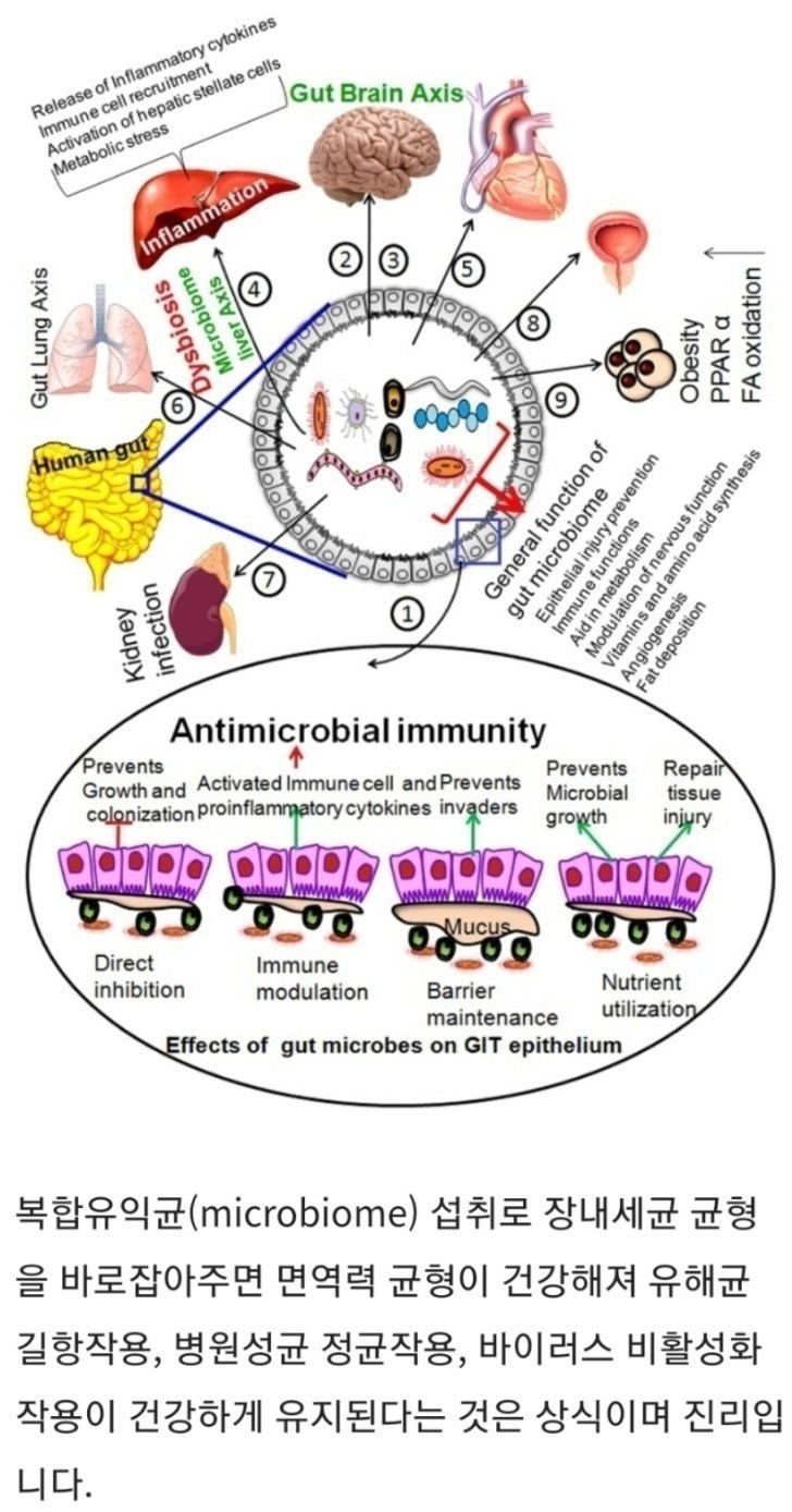 장내 유익균은 '람노오스(Rhamnose)'라는 다당류를 분비해 인체가 이에 맞서 면역반응을 유도하는 물질인 사이토카인이나 케모카인을 분비해 면역력 균형을 건강하게 유지한다는 연구도 발표되었습니다.
