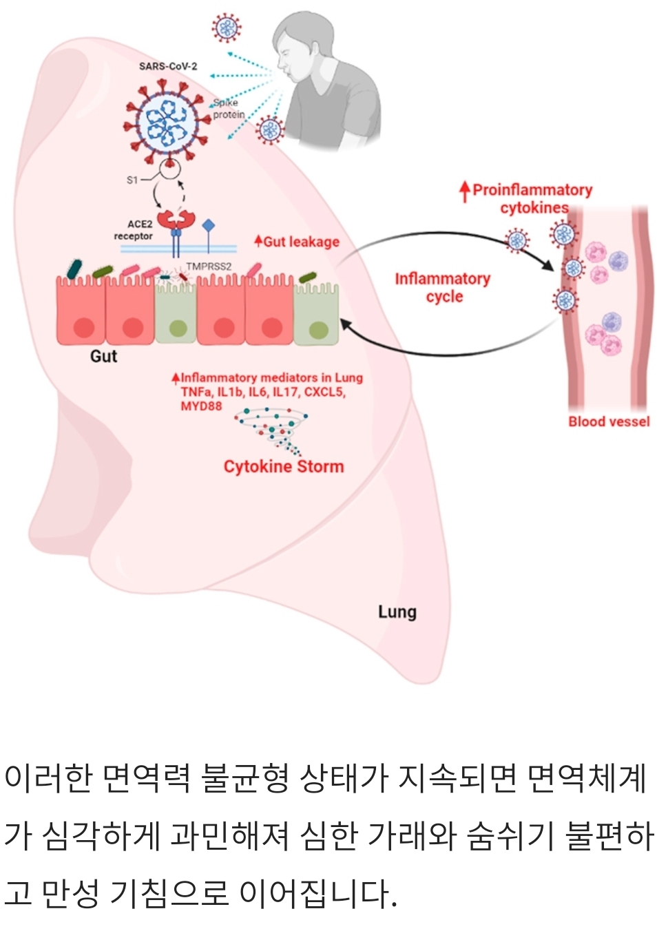 인스턴트식품 속의 방부제나 항생제 등에 의해 장내 정상세균총이 죽고 장내세균 유익균 군집 붕괴(dysbiosis)로 항체와 중화항체를 잘 만들어내지 못한다면 면역세포가 침입한 항원인 감기 바이러스를 제거할 수 있는 능력이 떨어지기 때문에 체내에 감기 바이러스가 오래 남고 감기가 오래 가게 됩니다.